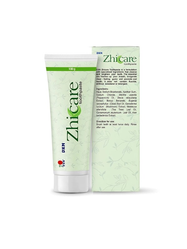 Pasta dental DXN Zhicare es una fórmula 100 % natural diseñada para una higiene bucal efectiva y completa. Cada tubo contiene 100 g que combina estos poderosos ingredientes: